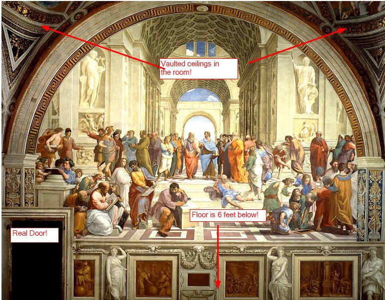 Of course, the star attractions are the Raphael Apartments and Sistine Chapel. You know this because there are "Sistine Chapel -->" signs everywhere. It reminded me of the signs to "La Joconde" in the Louvre (that's the Mona Lisa). After what felt like walking on a scaffolding a few floors up, we enter the Raphael Apartments; which are just a series of three or four empty rooms painted by Raphael (they were formerly papal apartments). The last room is the glorious School of Athens; an amazing painting to see. Two things I didn't know: 1) the ceiling is curved here. You actually see this in the posters of the School of Athens in the top right and left corners, but only once you know. And 2) the painted wall starts about 6 feet above the floor. So you are looking up at it; in fact, you can see the top of the door that you enter through in any poster on the lower left. I just thought all these little details are really cool and you'd never know from anywhere else.